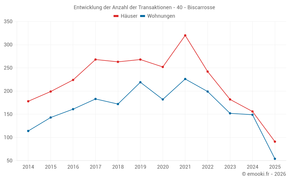Karte der Immobilienpreise in der Gemeinde Biscarrosse, wählen Sie einen Abschnitt, um Transaktionen nach Parzelle zu sehen.