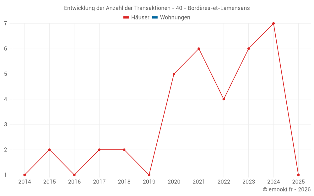 Karte der Immobilienpreise in der Gemeinde Bordères-et-Lamensans, wählen Sie einen Abschnitt, um Transaktionen nach Parzelle zu sehen.