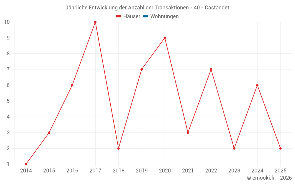 Karte der Immobilienpreise in der Gemeinde Castandet, wählen Sie einen Abschnitt, um Transaktionen nach Parzelle zu sehen.