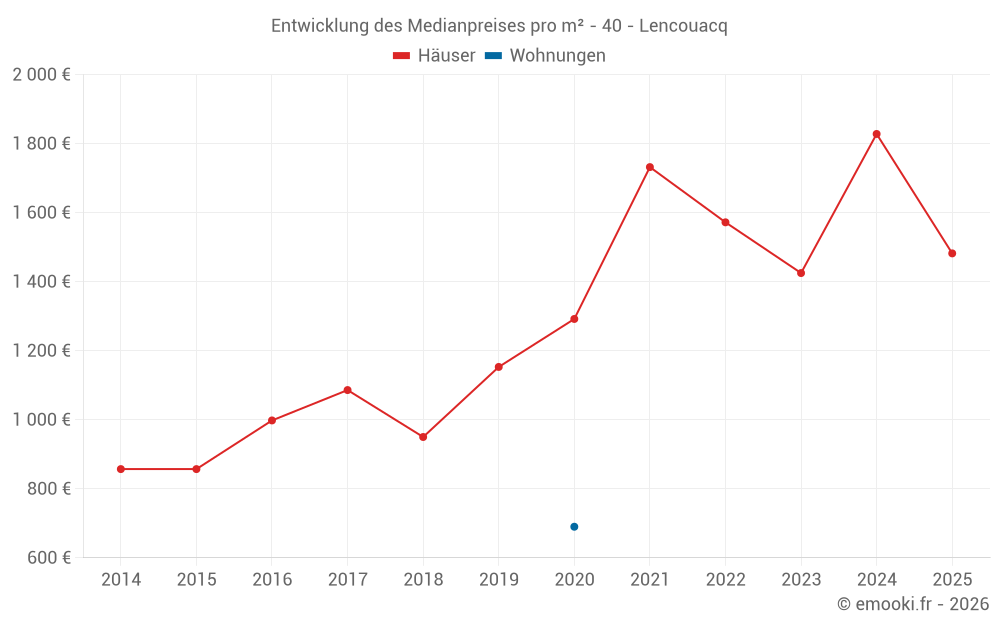 Karte der Immobilienpreise in der Gemeinde Lencouacq, wählen Sie einen Abschnitt, um Transaktionen nach Parzelle zu sehen.