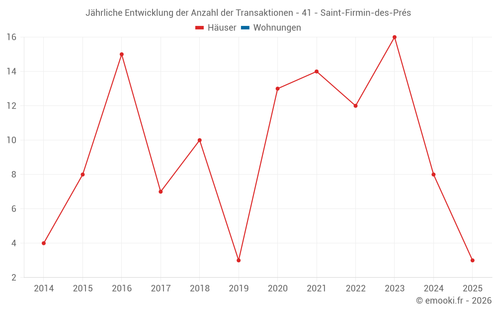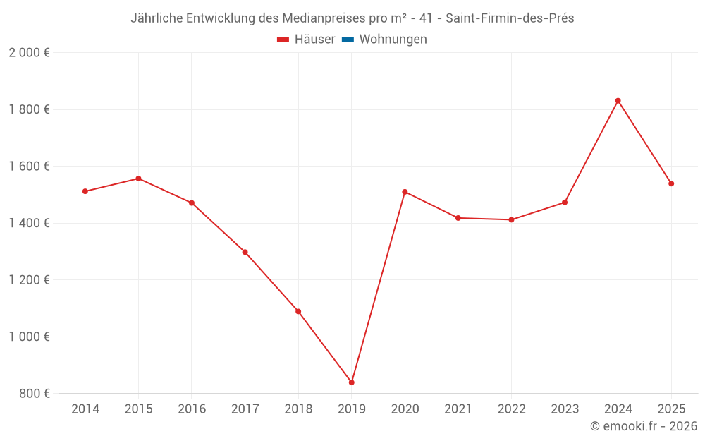 Der Durchschnittspreis auf den 20 Hausgeschäften der letzten 24 Monate in der Gemeinde Saint-Firmin-des-Prés betrug 1 646 € pro Quadratmeter für einen mittleren Immobilienwert von 156 000 €. Über diesen Zeitraum hinweg lagen 60% der Transaktionen zwischen 1 308 und 1 890 € pro Quadratmeter (vom 2. bis zum 8. Dezil).