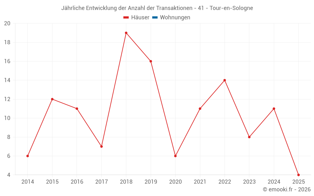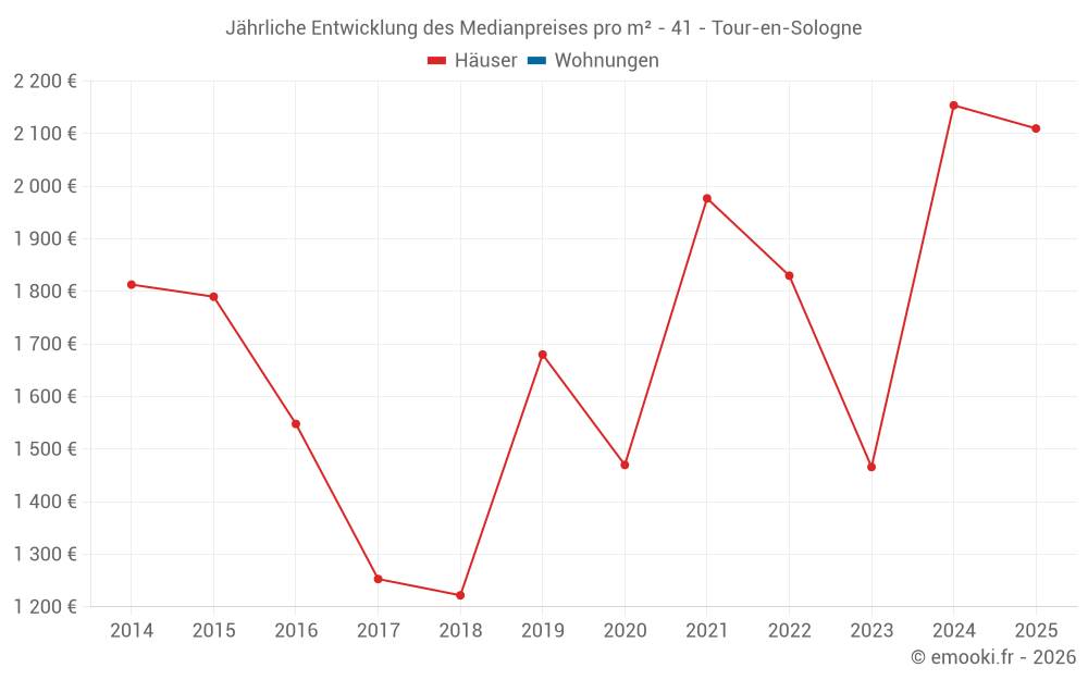 Der Durchschnittspreis auf den 18 Hausgeschäften der letzten 24 Monate in der Gemeinde Tour-en-Sologne betrug 1 977 € pro Quadratmeter für einen mittleren Immobilienwert von 182 500 €. Über diesen Zeitraum hinweg lagen 60% der Transaktionen zwischen 1 440 und 2 547 € pro Quadratmeter (vom 2. bis zum 8. Dezil).