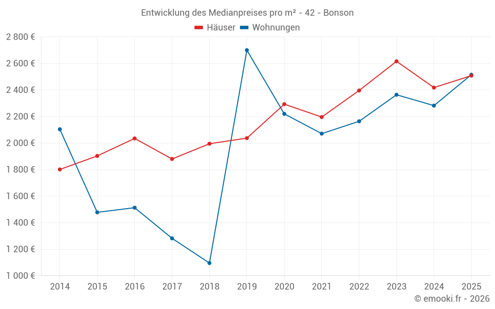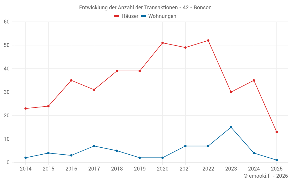 Karte der Immobilienpreise in der Gemeinde Bonson, wählen Sie einen Abschnitt, um Transaktionen nach Parzelle zu sehen.