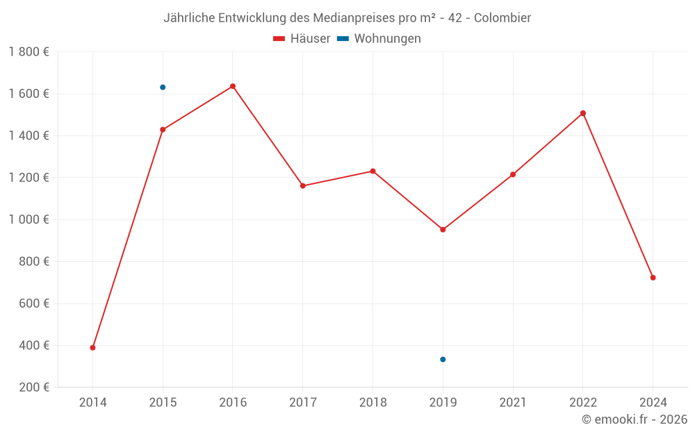 Entwicklung des Medianpreises pro m² von Häusern