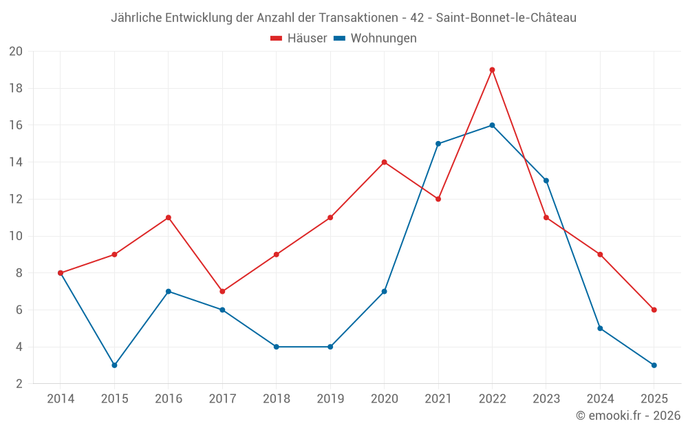 Der Durchschnittspreis auf den 15 Wohnungstransaktionen der letzten 24 Monate in der Gemeinde Saint-Bonnet-le-Château betrug 849 € pro Quadratmeter für einen mittleren Immobilienwert von 60 000 €. Über diesen Zeitraum hinweg lagen 60% der Transaktionen zwischen 354 und 1 405 € pro Quadratmeter (vom 2. bis zum 8. Dezil).