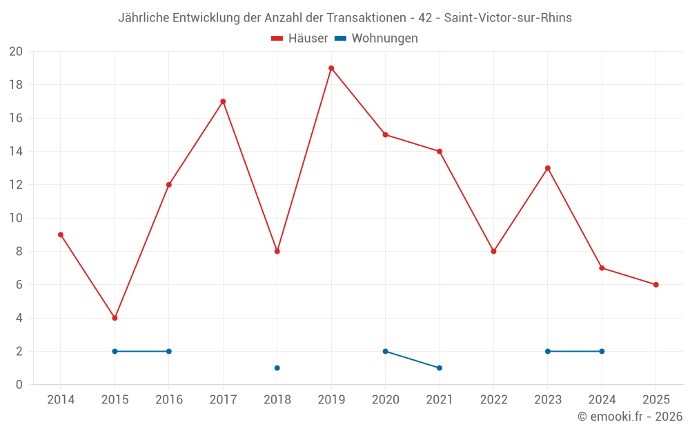 Der Durchschnittspreis auf den 18 Hausgeschäften der letzten 24 Monate in der Gemeinde Saint-Victor-sur-Rhins betrug 1 597 € pro Quadratmeter für einen mittleren Immobilienwert von 197 500 €. Über diesen Zeitraum hinweg lagen 60% der Transaktionen zwischen 1 174 und 2 189 € pro Quadratmeter (vom 2. bis zum 8. Dezil).