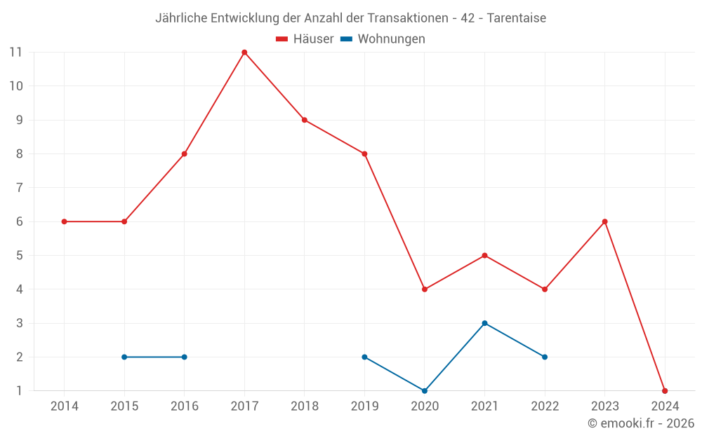 Karte der Immobilienpreise in der Gemeinde Tarentaise, wählen Sie einen Abschnitt, um Transaktionen nach Parzelle zu sehen.