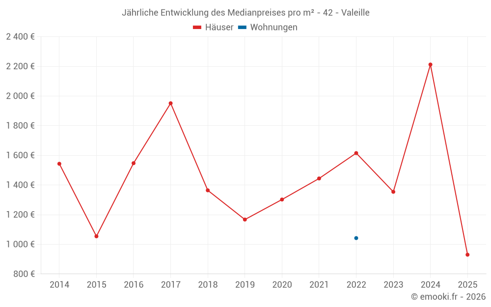Entwicklung des Preises pro m² von Häusern seit...
