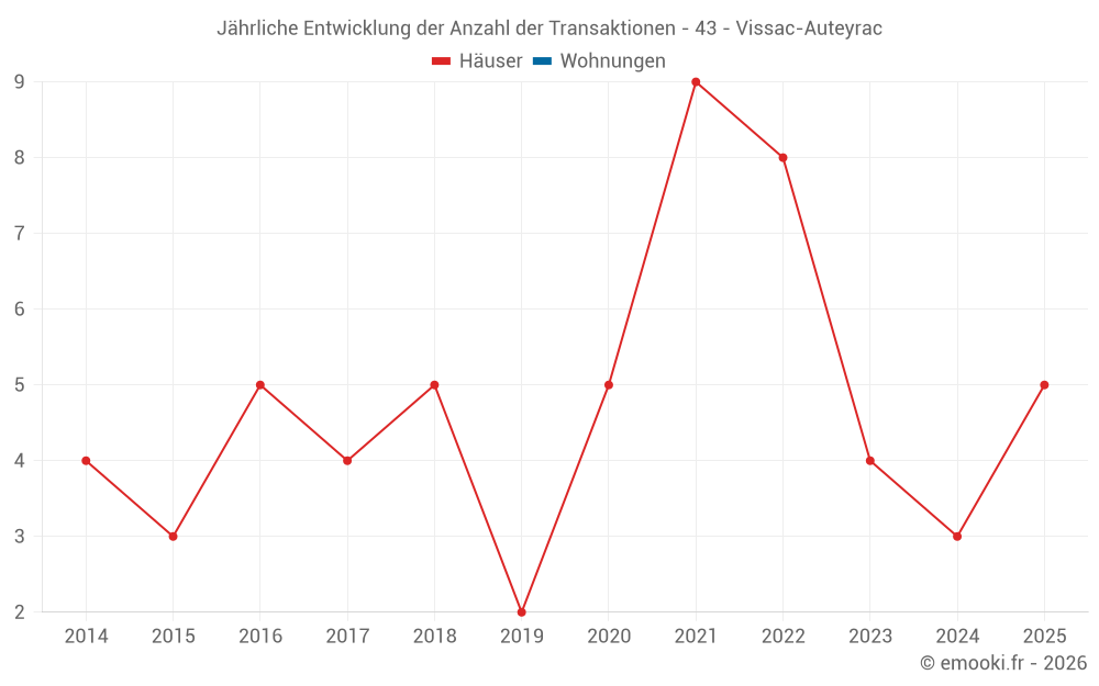 Der Preis pro m² von Häusern ist seit 5 Jahren um 60% gesunken, aber er ist in 9 Jahren um 43% gestiegen.