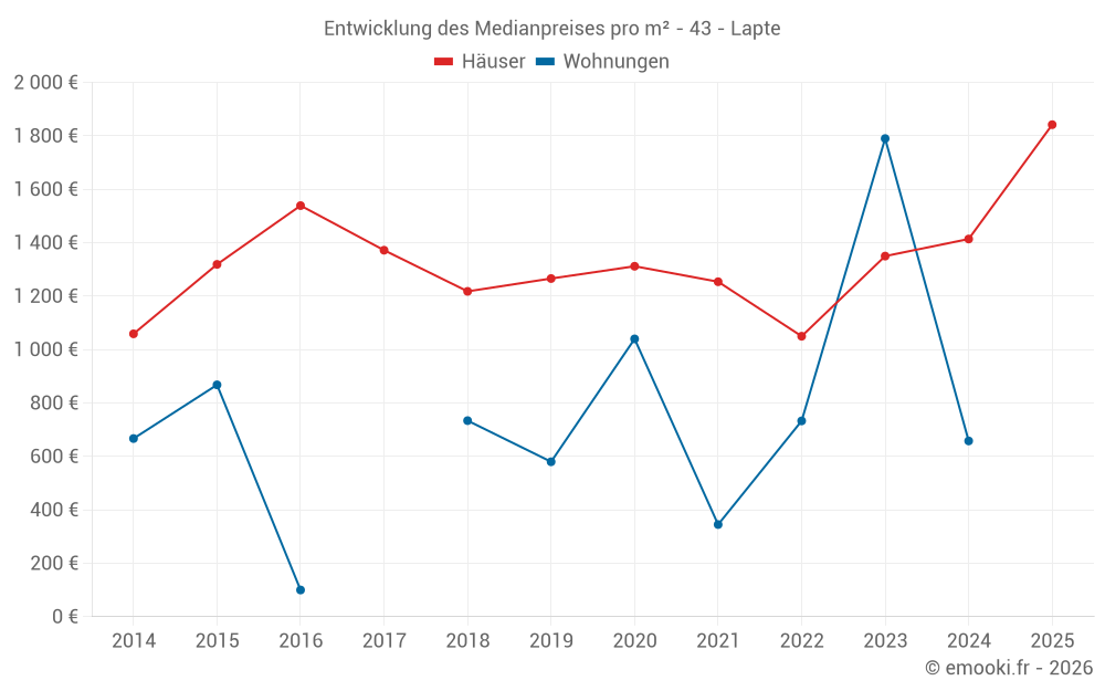 Karte der Immobilienpreise in der Gemeinde Lapte, wählen Sie einen Abschnitt, um Transaktionen nach Parzelle zu sehen.