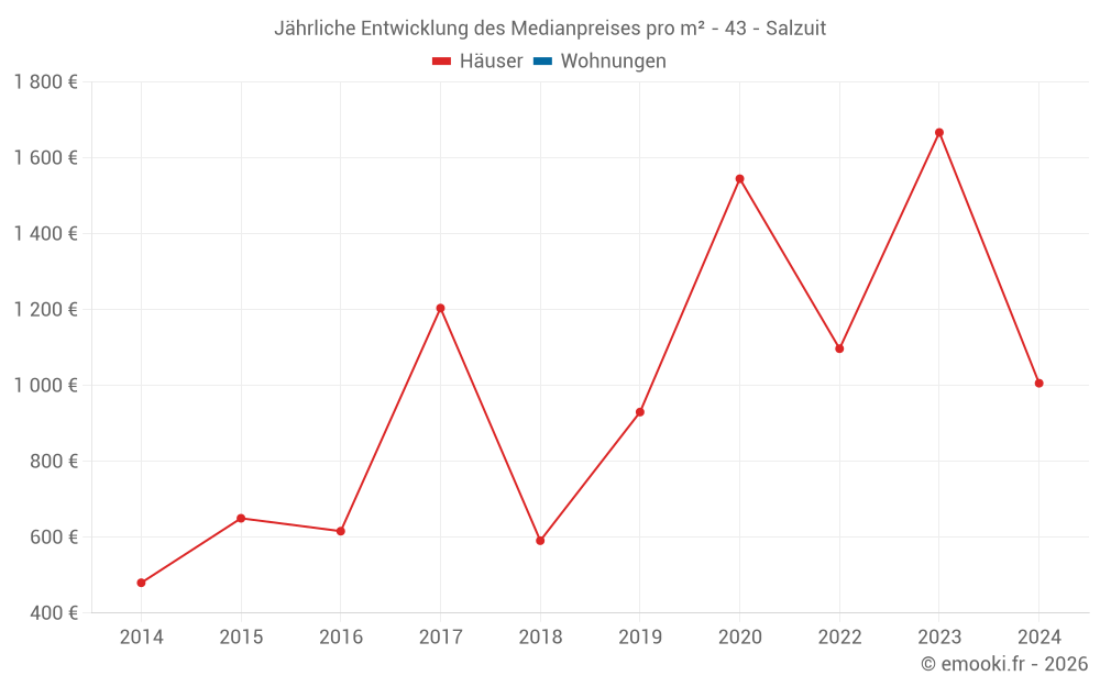 Entwicklung des Medianpreises pro m² von Häusern