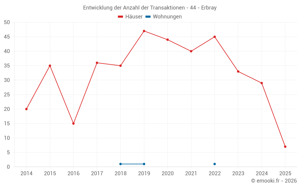 Karte der Immobilienpreise in der Gemeinde Erbray, wählen Sie einen Abschnitt, um Transaktionen nach Parzelle zu sehen.