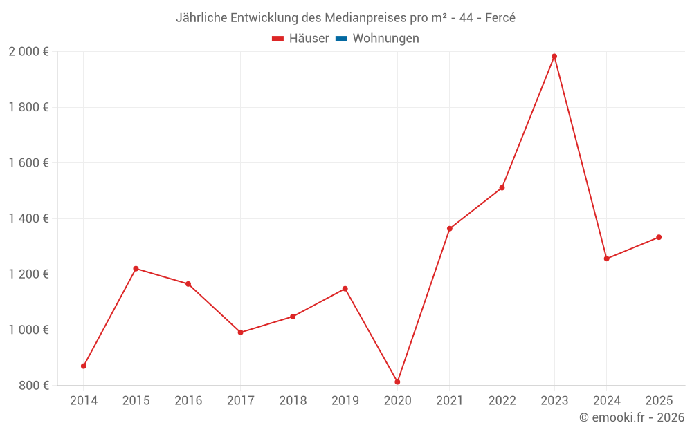 Entwicklung des Medianpreises pro m² von Häusern
