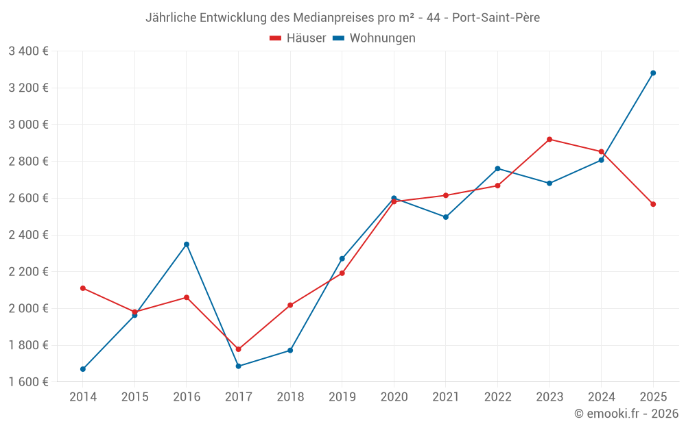 Der Durchschnittspreis auf den 34 Hausgeschäften der letzten 12 Monate in der Gemeinde Port-Saint-Père betrug 2 856 € pro Quadratmeter für einen mittleren Immobilienwert von 273 250 €. Über diesen Zeitraum hinweg lagen 60% der Transaktionen zwischen 2 017 und 3 278 € pro Quadratmeter (vom 2. bis zum 8. Dezil).