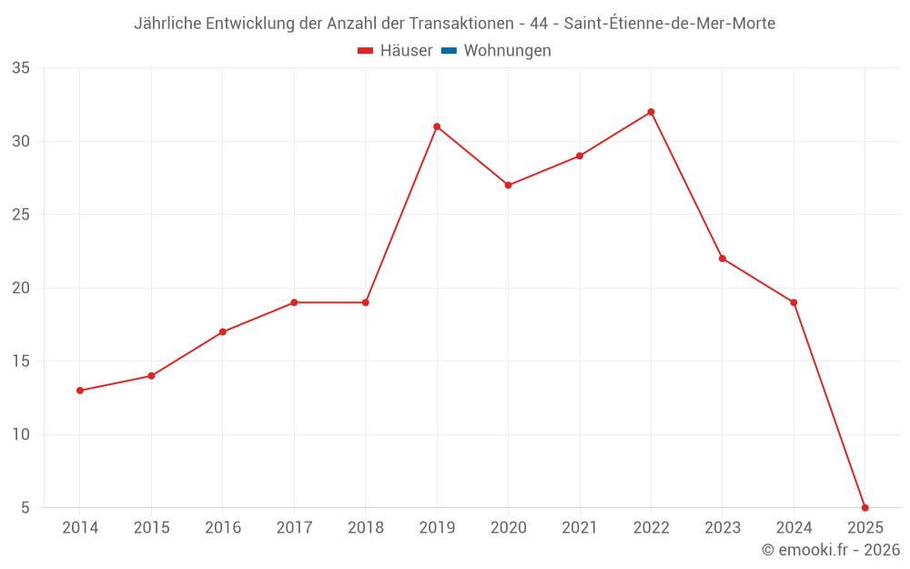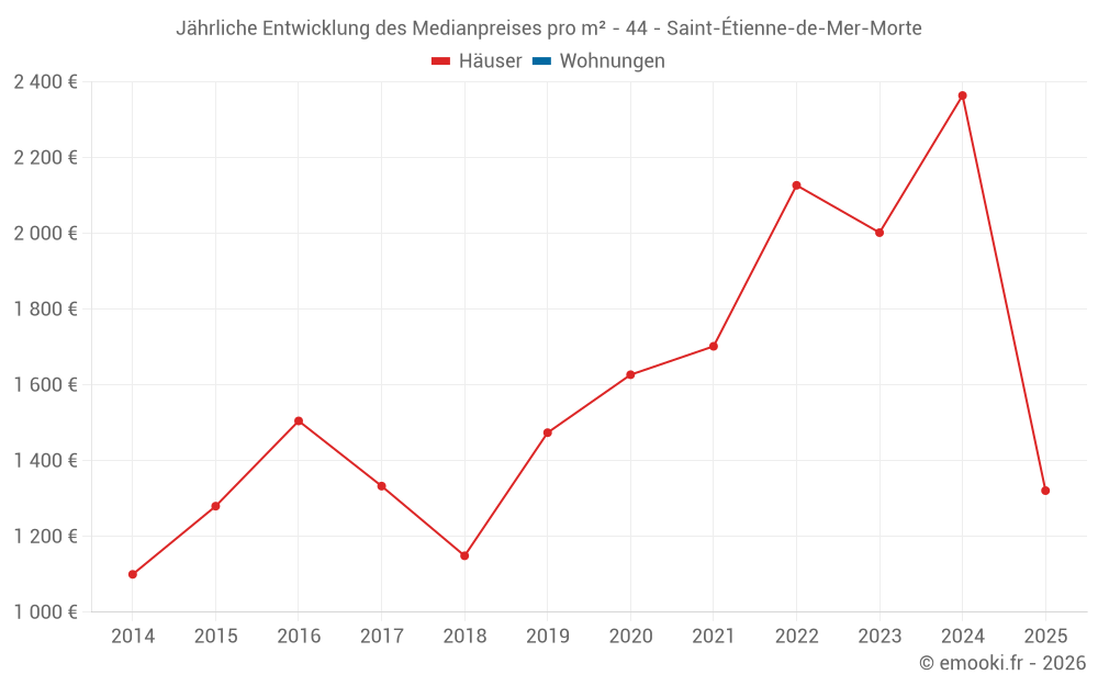 Der Durchschnittspreis auf den 16 Hausgeschäften der letzten 12 Monate in der Gemeinde Saint-Étienne-de-Mer-Morte betrug 1 895 € pro Quadratmeter für einen mittleren Immobilienwert von 140 000 €. Über diesen Zeitraum hinweg lagen 60% der Transaktionen zwischen 1 325 und 2 627 € pro Quadratmeter (vom 2. bis zum 8. Dezil).
