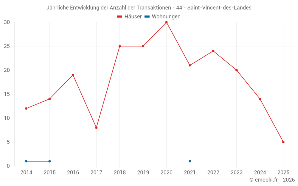 Der Durchschnittspreis auf den 31 Hausgeschäften der letzten 24 Monate in der Gemeinde Saint-Vincent-des-Landes betrug 1 391 € pro Quadratmeter für einen mittleren Immobilienwert von 130 000 €. Über diesen Zeitraum hinweg lagen 60% der Transaktionen zwischen 921 und 1 826 € pro Quadratmeter (vom 2. bis zum 8. Dezil).