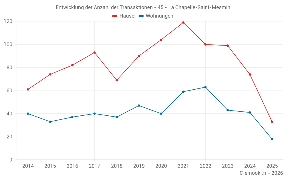 Karte der Immobilienpreise in der Gemeinde La Chapelle-Saint-Mesmin, wählen Sie einen Abschnitt, um Transaktionen nach Parzelle zu sehen.