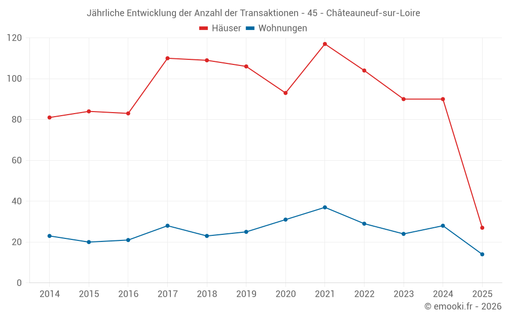 Der Durchschnittspreis auf den 27 Hausgeschäften der letzten 6 Monate in der Gemeinde Châteauneuf-sur-Loire betrug 1 814 € pro Quadratmeter für einen mittleren Immobilienwert von 225 000 €. Über diesen Zeitraum hinweg lagen 60% der Transaktionen zwischen 1 623 und 2 243 € pro Quadratmeter (vom 2. bis zum 8. Dezil).