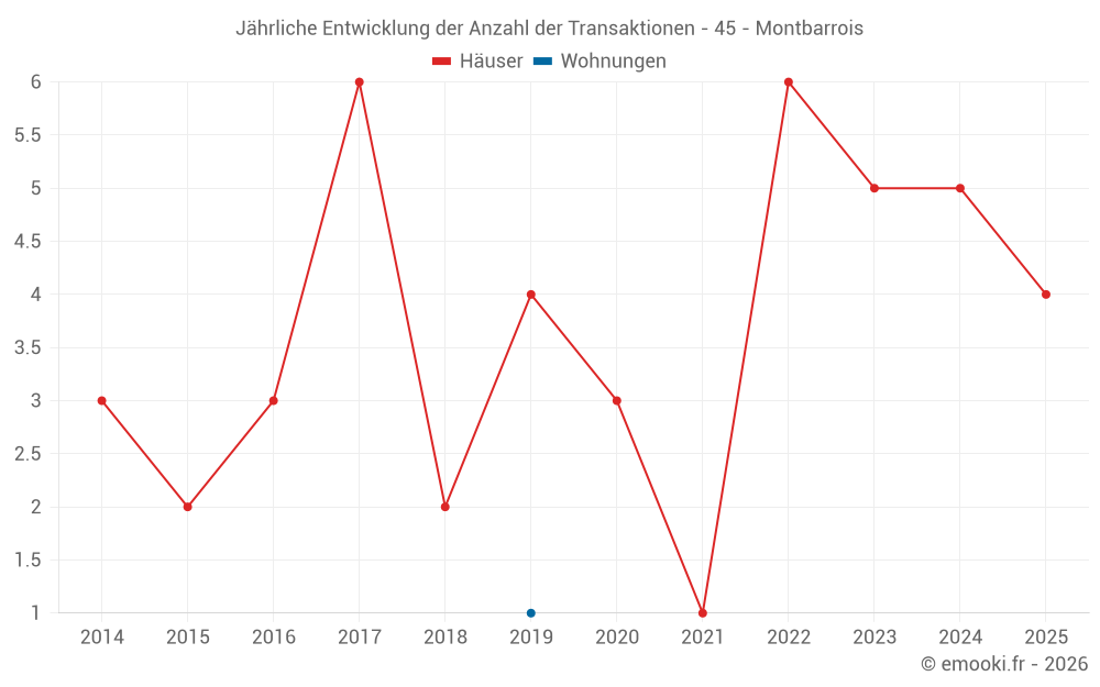 Der Preis pro m² von Häusern ist seit 3 Jahren um 7.2% gesunken, aber er ist in 6 Jahren um 55% gestiegen.