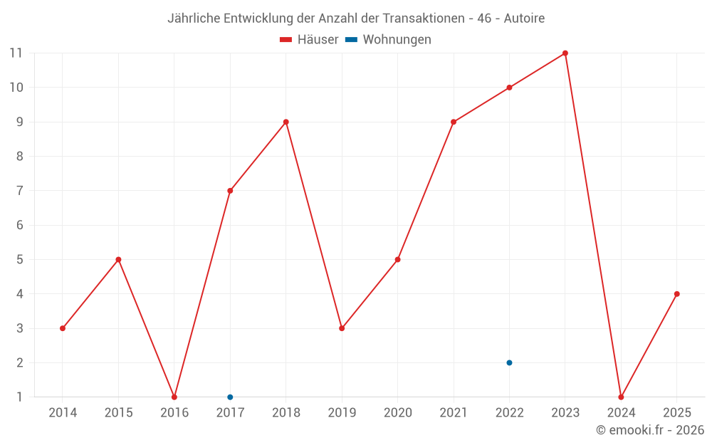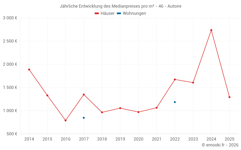 Der Preis pro m² von Häusern ist seit 3 Jahren um 23% gesunken, aber er ist in 7 Jahren um 34% gestiegen.