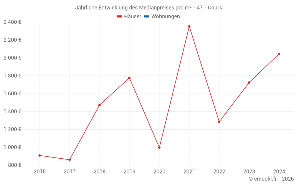 Entwicklung des Medianpreises pro m² von Häusern