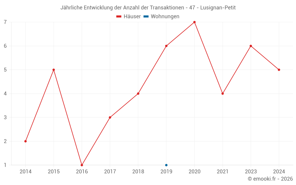 Karte der Immobilienpreise in der Gemeinde Lusignan-Petit, wählen Sie einen Abschnitt, um Transaktionen nach Parzelle zu sehen.
