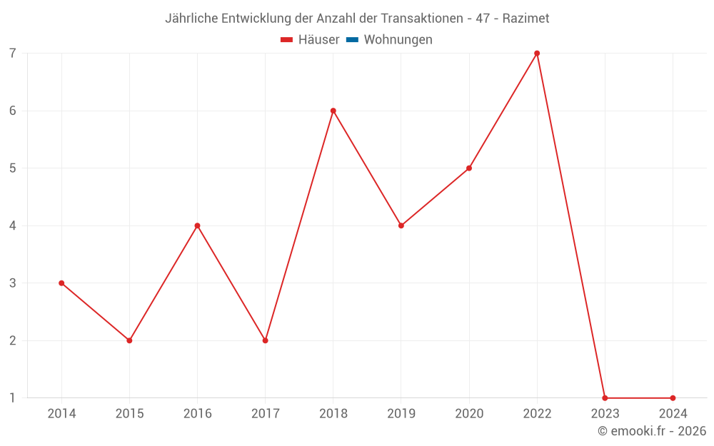 Karte der Immobilienpreise in der Gemeinde Razimet, wählen Sie einen Abschnitt, um Transaktionen nach Parzelle zu sehen.
