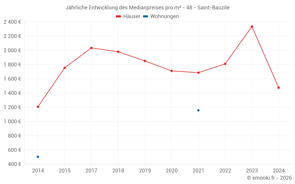 Entwicklung des Medianpreises pro m² von Häusern