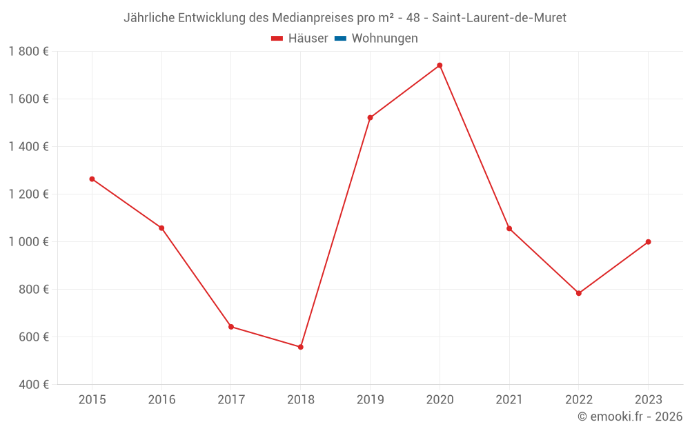 Entwicklung des Medianpreises pro m² von Häusern