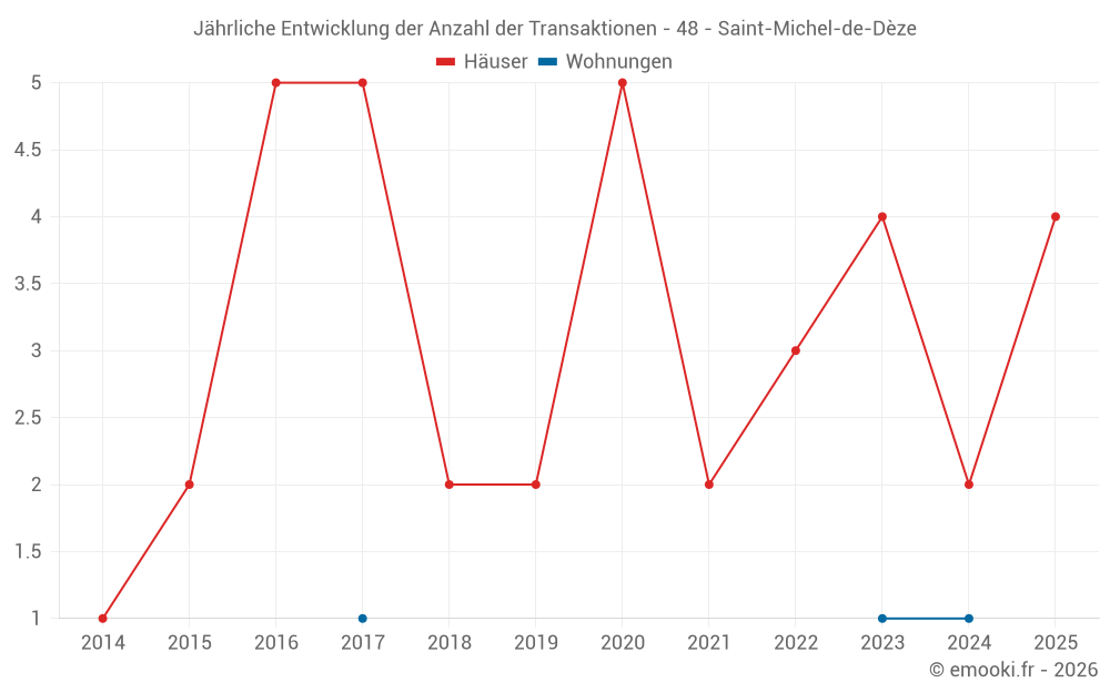 Der Preis pro m² von Häusern ist seit 2 Jahren um 40% gesunken, aber er ist in 5 Jahren um 56% gestiegen.