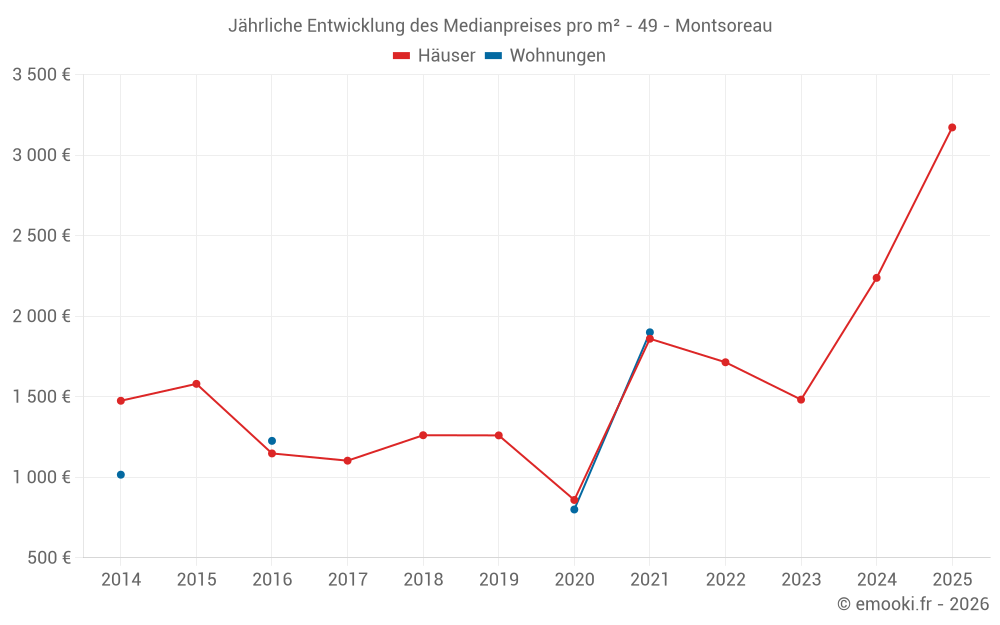 Entwicklung des Medianpreises pro m² von Wohnungen