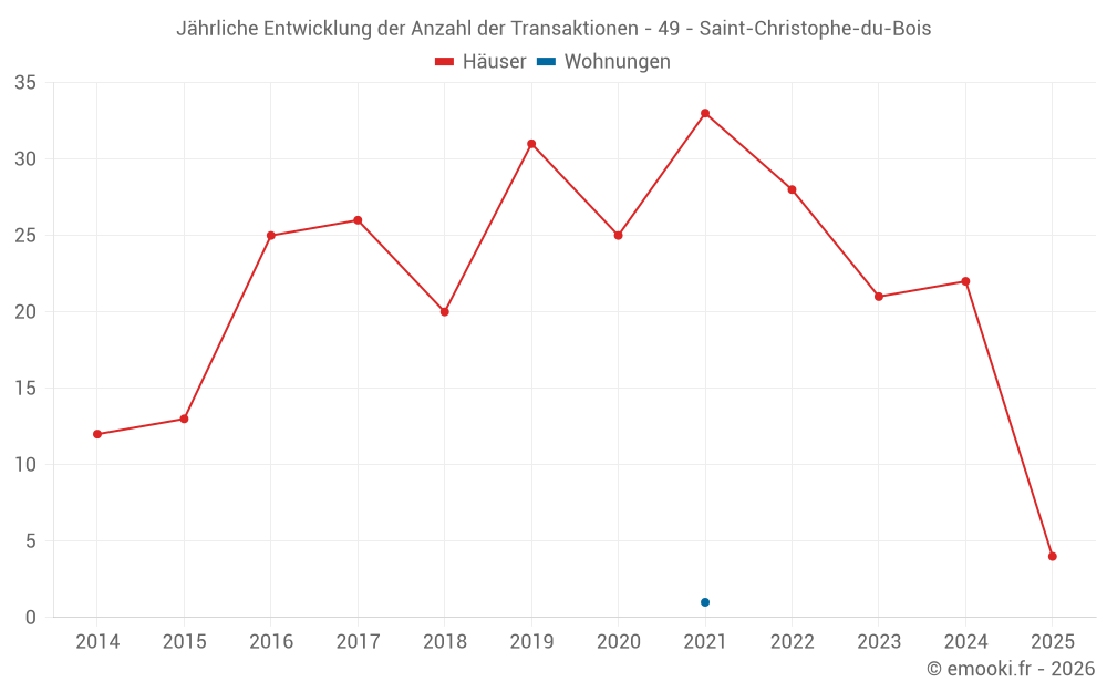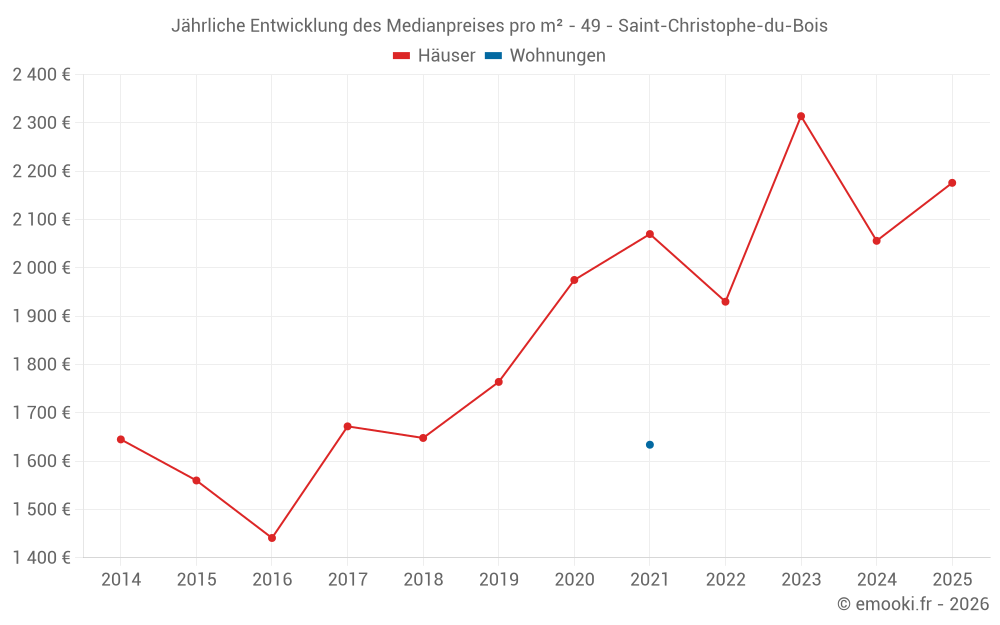 Der Durchschnittspreis auf den 16 Hausgeschäften der letzten 12 Monate in der Gemeinde Saint-Christophe-du-Bois betrug 2 016 € pro Quadratmeter für einen mittleren Immobilienwert von 197 000 €. Über diesen Zeitraum hinweg lagen 60% der Transaktionen zwischen 1 754 und 2 302 € pro Quadratmeter (vom 2. bis zum 8. Dezil).