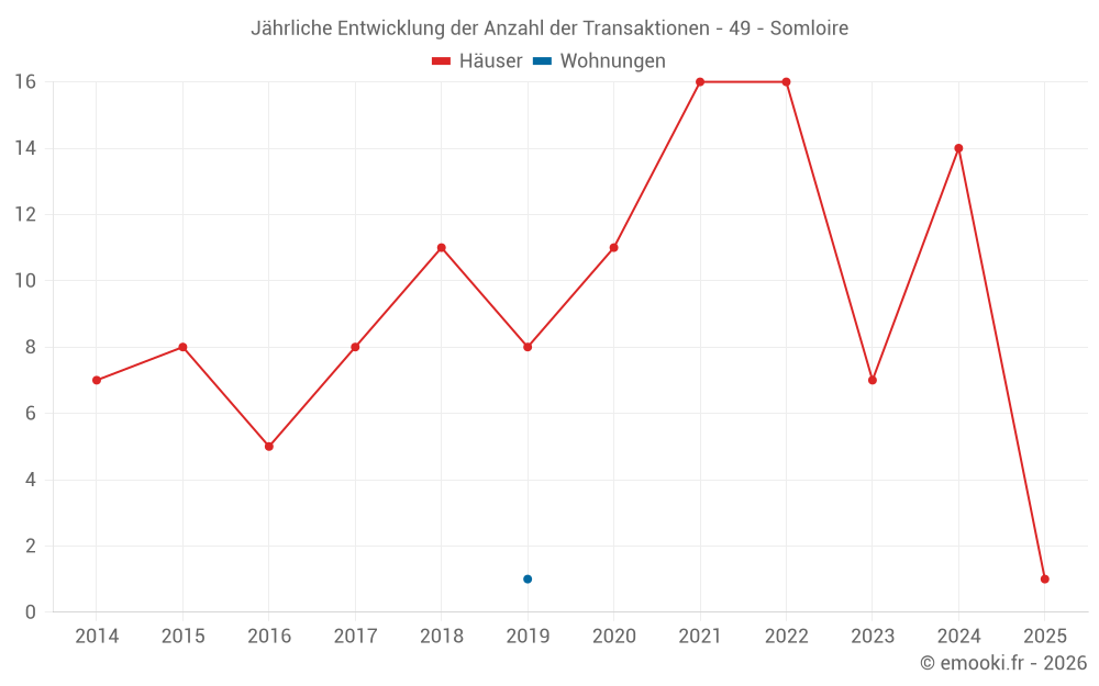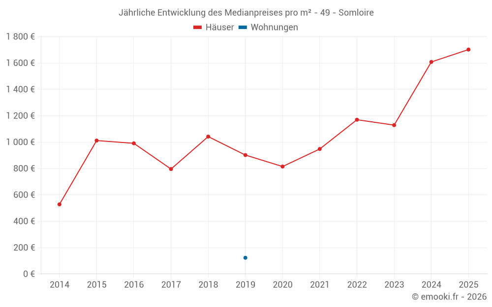 Der Durchschnittspreis auf den 21 Hausgeschäften der letzten 24 Monate in der Gemeinde Somloire betrug 1 529 € pro Quadratmeter für einen mittleren Immobilienwert von 125 000 €. Über diesen Zeitraum hinweg lagen 60% der Transaktionen zwischen 771 und 1 702 € pro Quadratmeter (vom 2. bis zum 8. Dezil).