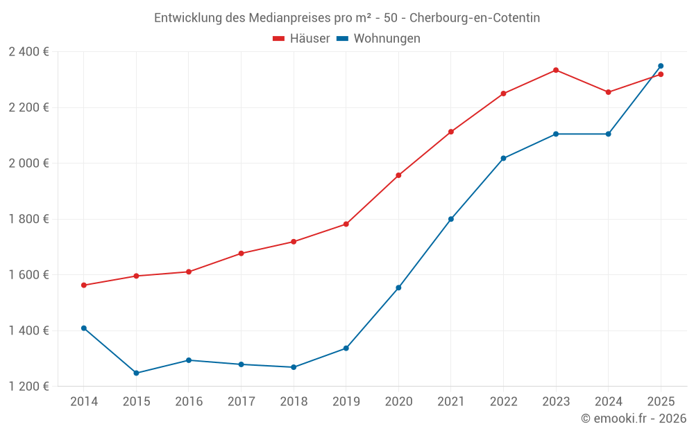Werte der Preispercentile pro m² über die für den geschätzten Preis jeder Art von Immobilie verwendeten Zeiträume.