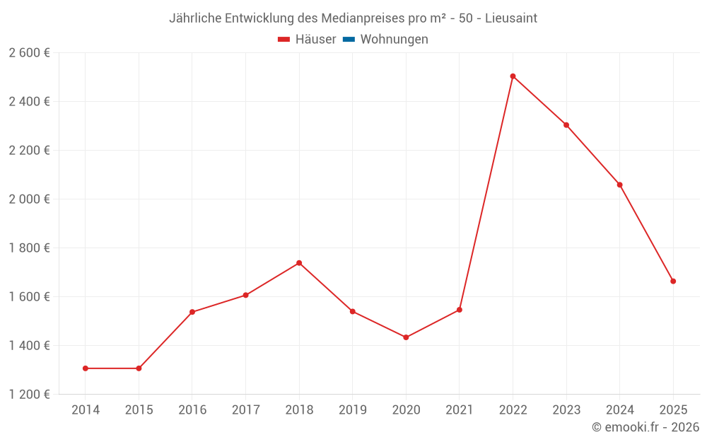 Der Preis pro m² von Häusern ist seit 3 Jahren um 34% gesunken, aber er ist in 11 Jahren um 27% gestiegen.