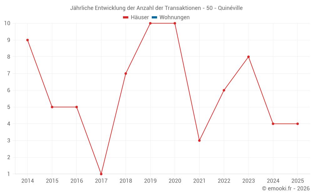 Der Preis pro m² von Häusern ist seit 1 Jahr um 48% gesunken, aber er ist in 11 Jahren um 13% gestiegen.
