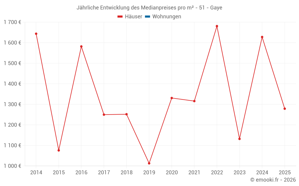Der Preis pro m² von Häusern ist seit 3 Jahren um 24% gesunken, aber er ist in 6 Jahren um 26% gestiegen.