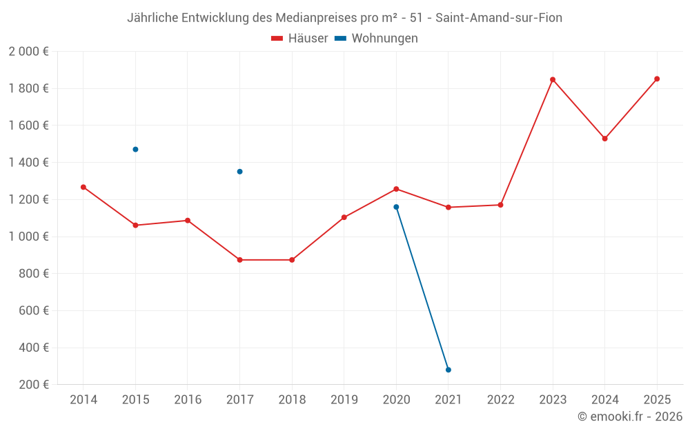 Entwicklung des Medianpreises pro m² von Wohnungen