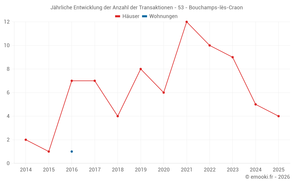 Karte der Immobilienpreise in der Gemeinde Bouchamps-lès-Craon, wählen Sie einen Abschnitt, um Transaktionen nach Parzelle zu sehen.