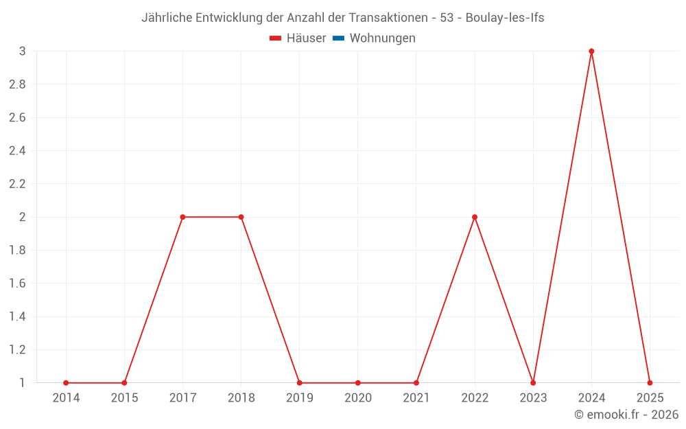 Karte der Immobilienpreise in der Gemeinde Boulay-les-Ifs, wählen Sie einen Abschnitt, um Transaktionen nach Parzelle zu sehen.