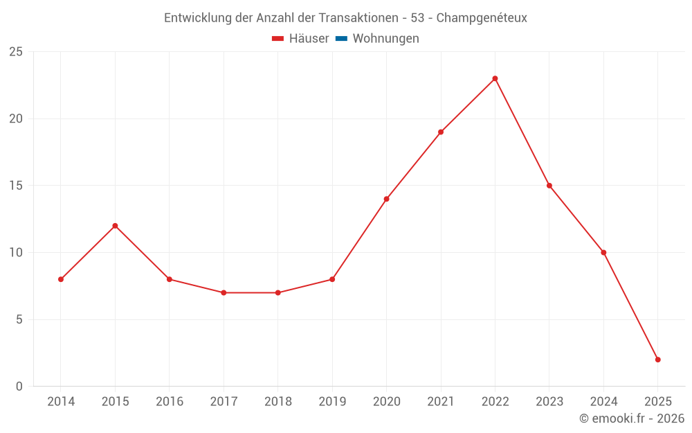 Karte der Immobilienpreise in der Gemeinde Champgenéteux, wählen Sie einen Abschnitt, um Transaktionen nach Parzelle zu sehen.