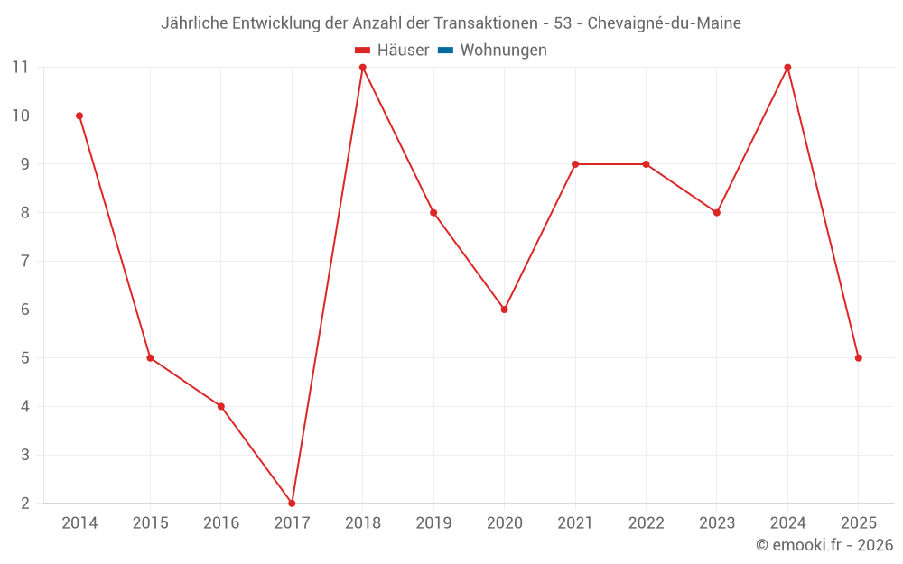 Der Durchschnittspreis auf den 20 Hausgeschäften der letzten 24 Monate in der Gemeinde Chevaigné-du-Maine betrug 908 € pro Quadratmeter für einen mittleren Immobilienwert von 64 250 €. Über diesen Zeitraum hinweg lagen 60% der Transaktionen zwischen 638 und 1 116 € pro Quadratmeter (vom 2. bis zum 8. Dezil).