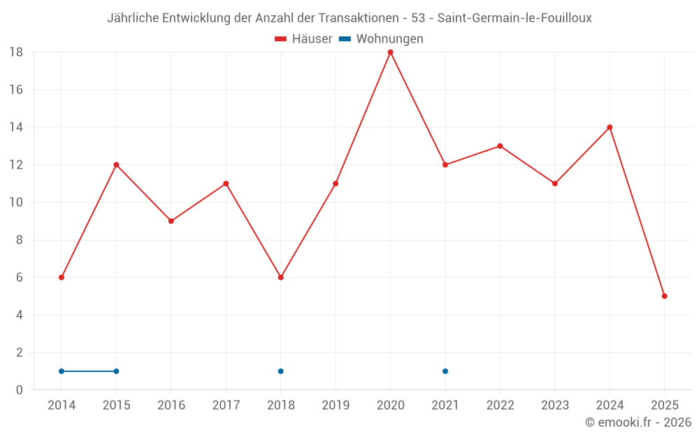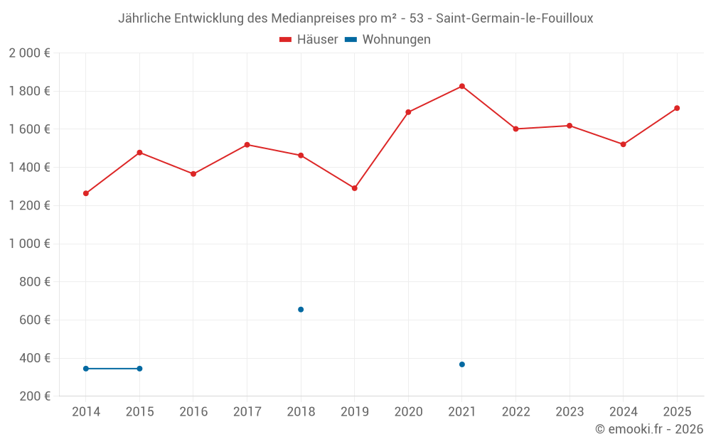 Der Durchschnittspreis auf den 30 Hausgeschäften der letzten 24 Monate in der Gemeinde Saint-Germain-le-Fouilloux betrug 1 643 € pro Quadratmeter für einen mittleren Immobilienwert von 164 200 €. Über diesen Zeitraum hinweg lagen 60% der Transaktionen zwischen 1 237 und 2 184 € pro Quadratmeter (vom 2. bis zum 8. Dezil).