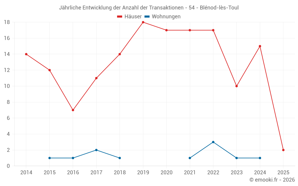 Der Durchschnittspreis auf den 20 Hausgeschäften der letzten 24 Monate in der Gemeinde Blénod-lès-Toul betrug 1 030 € pro Quadratmeter für einen mittleren Immobilienwert von 122 485 €. Über diesen Zeitraum hinweg lagen 60% der Transaktionen zwischen 899 und 1 747 € pro Quadratmeter (vom 2. bis zum 8. Dezil).