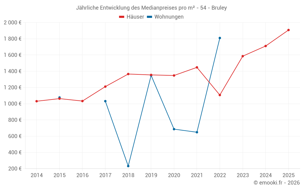 Entwicklung des Medianpreises pro m² von Wohnungen