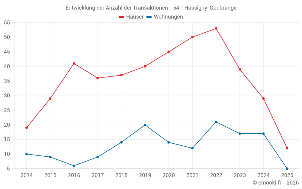 Karte der Immobilienpreise in der Gemeinde Hussigny-Godbrange, wählen Sie einen Abschnitt, um Transaktionen nach Parzelle zu sehen.