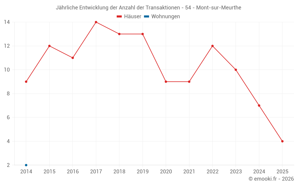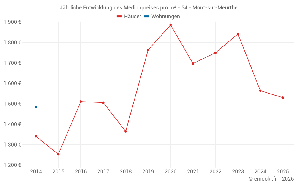 Der Durchschnittspreis auf den 17 Hausgeschäften der letzten 24 Monate in der Gemeinde Mont-sur-Meurthe betrug 1 450 € pro Quadratmeter für einen mittleren Immobilienwert von 160 000 €. Über diesen Zeitraum hinweg lagen 60% der Transaktionen zwischen 1 105 und 2 085 € pro Quadratmeter (vom 2. bis zum 8. Dezil).