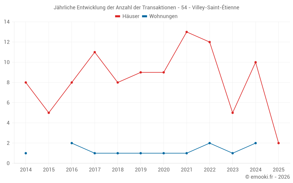 Der Durchschnittspreis auf den 15 Hausgeschäften der letzten 24 Monate in der Gemeinde Villey-Saint-Étienne betrug 1 819 € pro Quadratmeter für einen mittleren Immobilienwert von 240 000 €. Über diesen Zeitraum hinweg lagen 60% der Transaktionen zwischen 1 509 und 2 428 € pro Quadratmeter (vom 2. bis zum 8. Dezil).