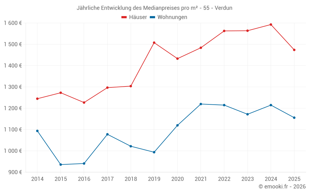 Was ist der Preis pro m2 für Häuser in Verdun?