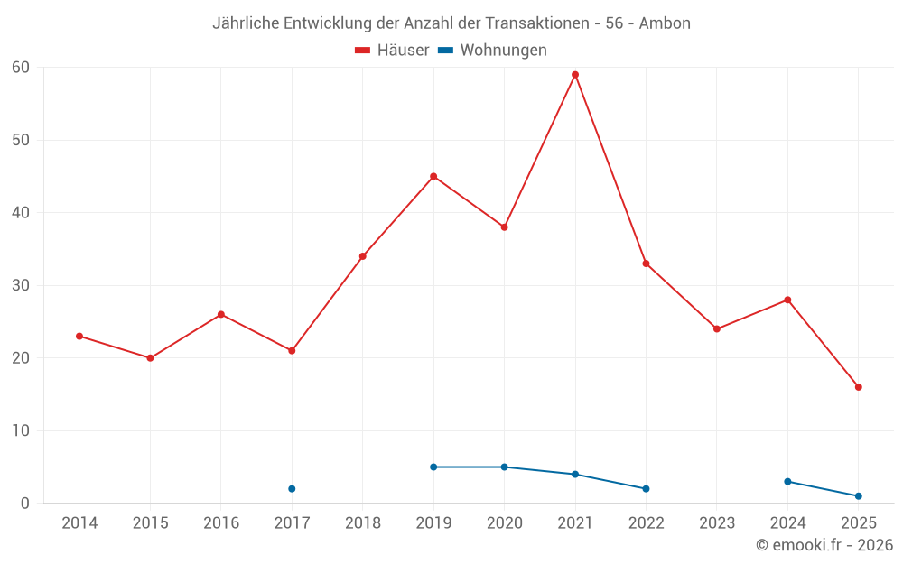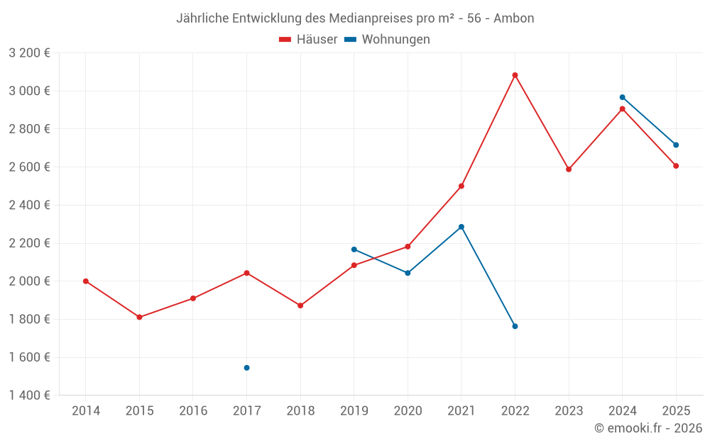 Der Durchschnittspreis auf den 28 Hausgeschäften der letzten 12 Monate in der Gemeinde Ambon betrug 2 842 € pro Quadratmeter für einen mittleren Immobilienwert von 217 250 €. Über diesen Zeitraum hinweg lagen 60% der Transaktionen zwischen 2 042 und 3 156 € pro Quadratmeter (vom 2. bis zum 8. Dezil).